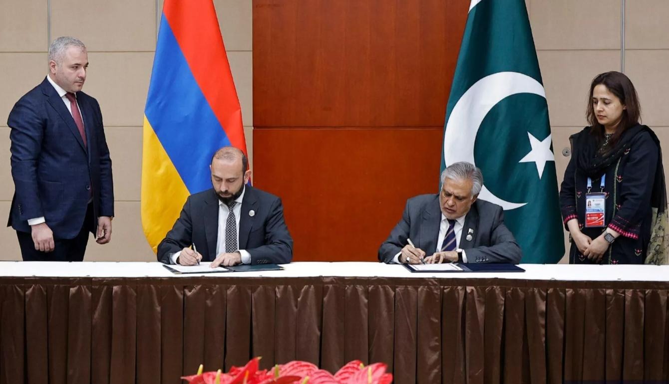 During the SCO summit held in the Chinese city of Tianjin, the Foreign Ministers of Armenia and Pakistan signed a joint communiqué on the establishment of diplomatic relations. The document was signed by Armenian Foreign Minister Ararat Mirzoyan and Deputy Prime Minister and Foreign Minister of Pakistan Mohammad Ishaq Dar, the press service of the Armenian Foreign Ministry reported.