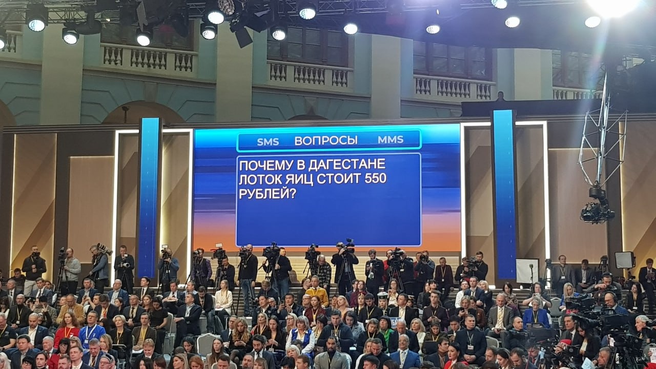 Russian President Vladimir Putin is holding a direct line today and at the same time a large press conference on the results of the year. At the beginning of the event, a question appeared on the monitor screen: “Why does a tray of eggs cost 550 rubles in Dagestan?” The President ignored him.