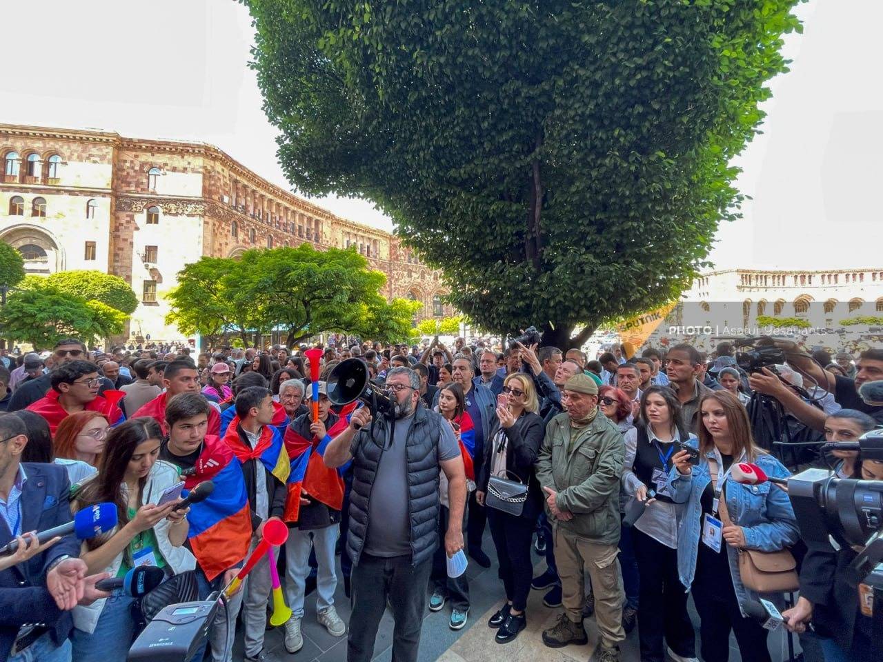 A police cordon cordoned off the government building, where protesters led by movement organizer Bagrat Galstanyan began to gather. MP Garnik Danielyan spoke at the rally: “We do not agree with the government’s decisions and have gathered here to express our disagreement. The authorities are acting against the interests of Armenia, signing documents and surrendering Armenian settlements to Azerbaijan.”