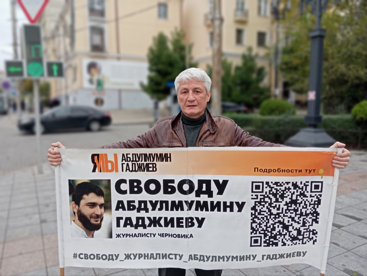 A solitary picket was held in the capital of Dagestan demanding the release of journalist of the Chernovik newspaper Abdulmumin Gadzhiev and the termination of the criminal case against him.