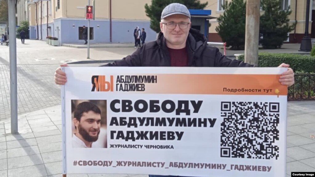In Makhachkala, Magomed Magomedov, a colleague of Gadzhiev, a journalist for Chernovik, went out to a solo picket “according to tradition”. With a poster with the inscription "Freedom to Abdulmumin Hajiyev" he stood for about half an hour.