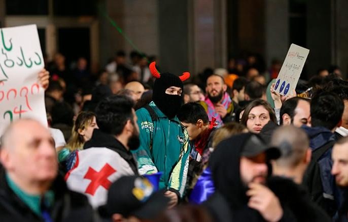 С 4 апреля в Тбилиси оппозиция и гражданские активисты проводят демонстрации против принятия законопроекта. Полиция неоднократно применяла перцовый газ и водометы при разгоне протестующих.