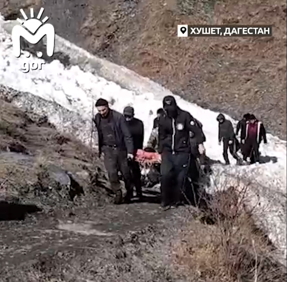 People living in the village of Khushet, Tsumadi district of Dagestan, dragged a fellow villager on a stretcher on a mountain serpentine to the ambulance. There is no local hospital in the town.